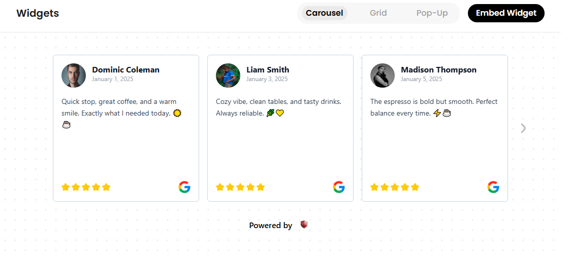 Embed customizable review widgets on your website to showcase real-time feedback and build trust with every visitor.